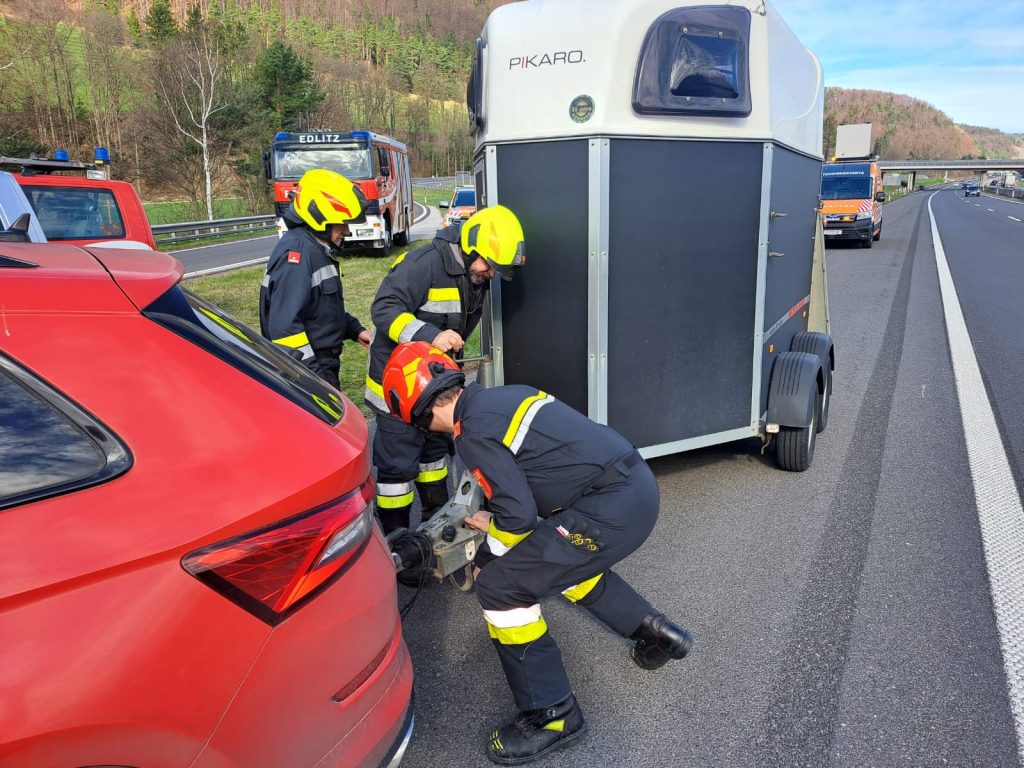 Kurz nach 9 Uhr wurden wir am heutigen Samstag (23.03.2024) zu einer Autobahnbergung (T1) auf die A2 Richtung Graz beim Knoten Grimmenstein gerufen. Zwischen der Auf und Abfahrt Grimmenstein kam ein Pkw samt Pferdeanhänger aufgrund eines technischen Defekts zum Stillstand. Seitens der Autobahnpolizei wurde die Freiwillige Feuerwehr Edlitz alarmiert, um schnellstmöglich das liegengebliebene Hindernis von der A2 zu verbringen und den Verkehrsfluss zu gewährleisten. Wir rückten mit VRF, RLFA-3000, WLF und KDO sowie 10 Mann auf die A2 aus. Vor Ort wurde der Pkw mittels Hubbrille und der Pferdeanhänger mittels VRF von der Autobahn verbracht. Nach rund einer Stunde konnte der Einsatz beendet werden. Verletzt wurde niemand.