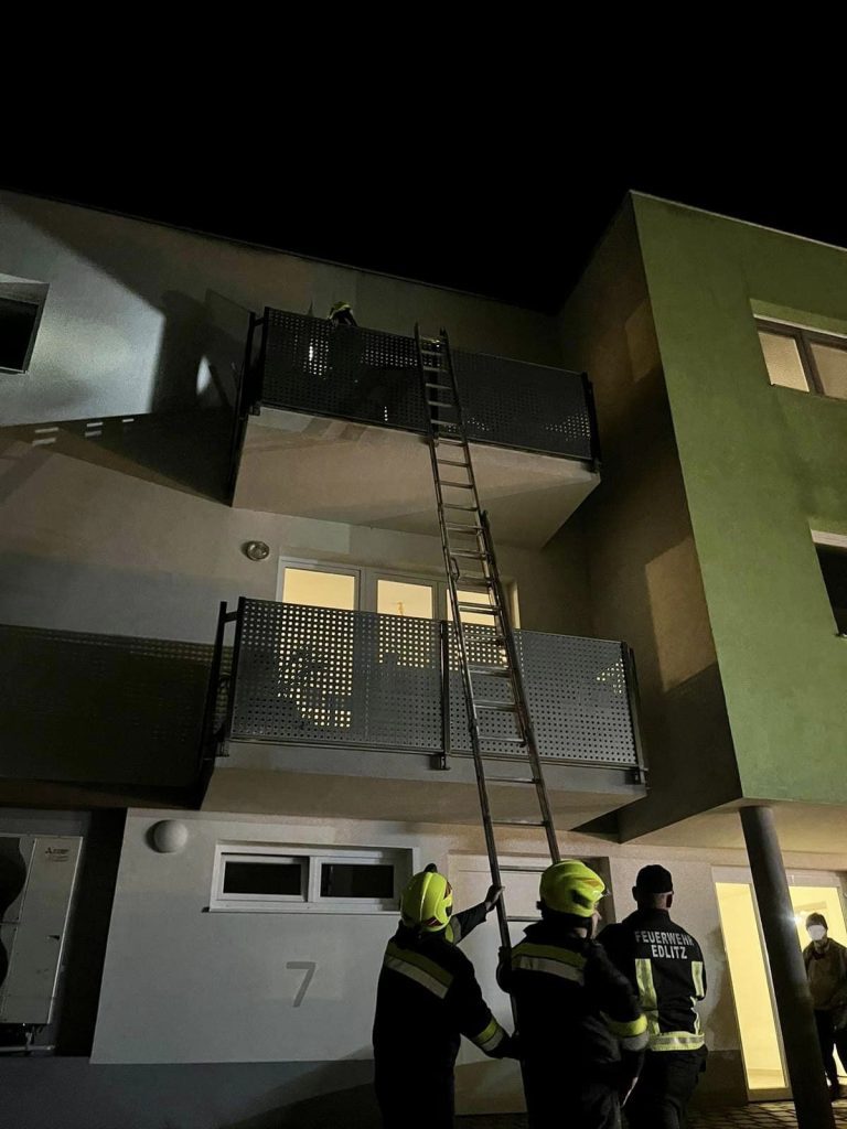 Über die offene Balkontür konnte sich die Feuerwehr mittels Schiebeleiter rasch Zutritt in die Wohnung verschaffen und die zugefallene Eingangstüre öffnen. Nach rund 20 Minuten konnte die Freiwillige Feuerwehr Edlitz wieder in das Feuerwehrhaus einrücken.
