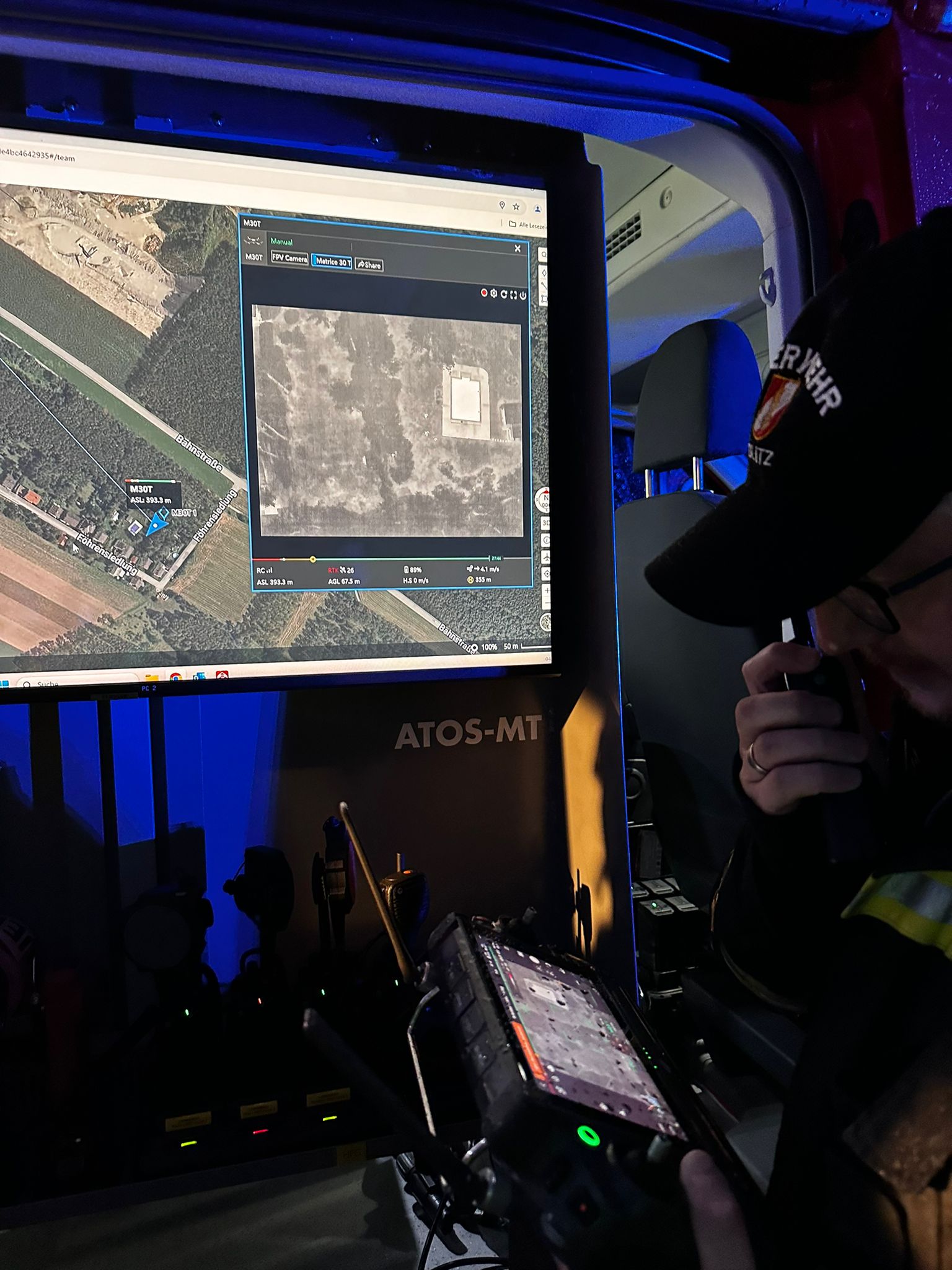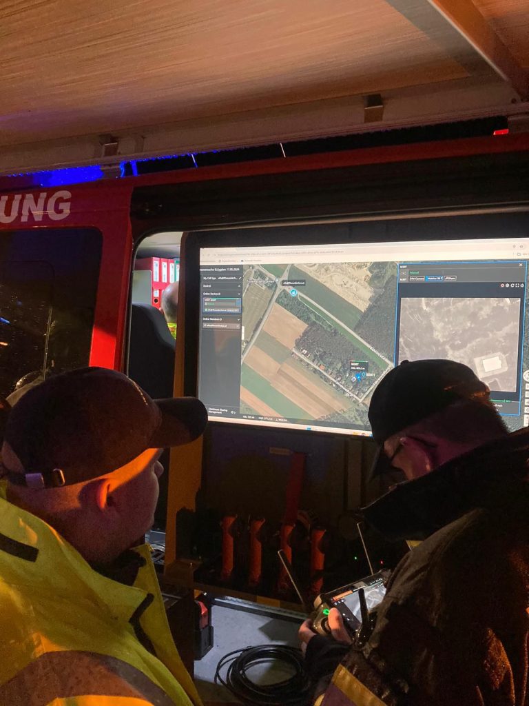 Vor Ort wurden die Drohnenteams eingewiesen und die Suchgebiete eingeteilt. Neben der Feuerwehr Drohnengruppe 15 stand auch ein Drohnenteam der Polizei sowie ein Polizeisuchhund im Einsatz. Der Bereich Föhrenwald wurde im Unfallsbereich mit den Drohnen abgesucht. Strömender Regen erschwerte dabei den Einsatz. Nach rund 1.5 Stunden wurde der Einsatz von der Polizei beendet. Wir bedanken uns bei allen eingesetzten Kräften für die hervorragende Zusammenarbeit.