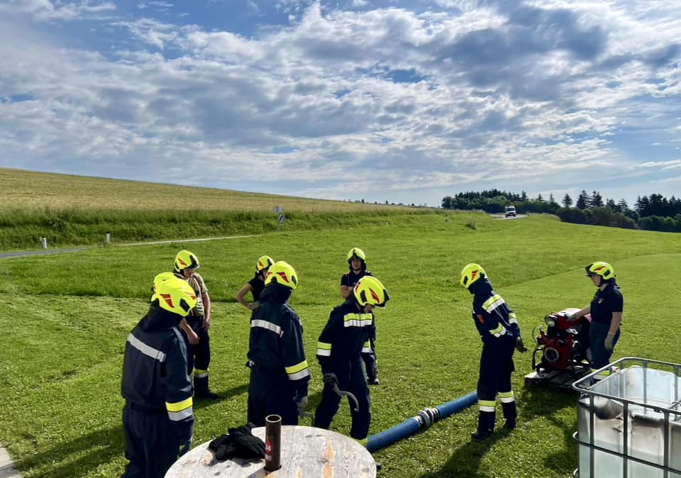 Nachdem es bei der ersten Ausbildungseinheit um das Thema Technik ging, wurde an diesem Tag der Fokus auf den Bereich Branddienst gelegt. Hier konnten die Jungflorianis der beiden Wehren den korrekten Ablauf einer Zubringleitung mit einer Tragkraftspritze (TS) beüben.