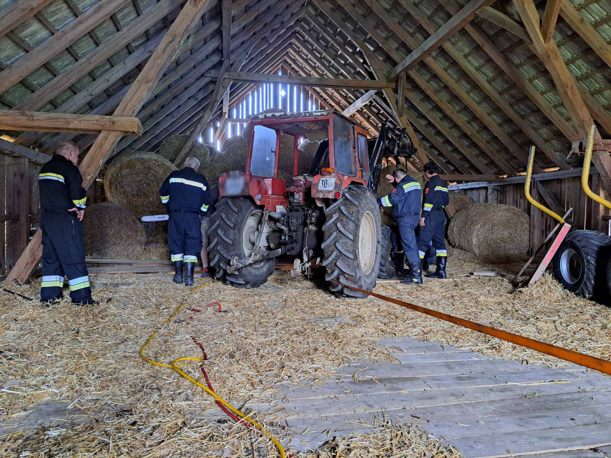 Die Freiwillige Feuerwehr Edlitz wurde am heutigen Donnerstag (11.07.2024) am Vormittag zu einer Traktorbergung ins Gemeindegebiet gerufen. Ein Landwirt war dabei mit seinem Traktor Strohballen in den Stadel zu transportieren. Aus noch unbekannter Ursache brach der Traktor dabei mit dem Vorderrad durch den Holzbalkenboden ein. Verletzt wurde glücklicherweise niemand. Mittels Hebekissen und Pölzmaterial wurde der Traktor angehoben und in weiterer Folge aus der misslichen Lage befreit. Nach rund 2 Stunden konnte der Einsatz beendet werden. Die FF Edlitz stand mit VRF, RLFA-3000, KDOF und 11 Mitgliedern im Einsatz.