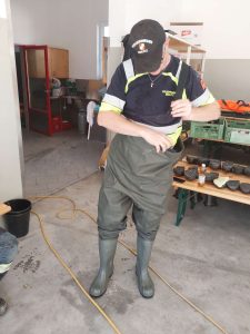 Nach und nach arbeiteten wir eine Einsatzstelle nach der anderen ab. Bei einem Haus galt es einen im Keller befindlichen Pelletstank auszuräumen, der durch das Wasser um ein 5-faches aufquoll und die Statik des Hauses gefährdete. Gemeinsam mit Kameraden der Feuerwehren Feistritz am Wechsel und Zöbern trugen wir Box für Box nach draussen und füllten so insgesamt 15 Big Bags mit den zerfallenen und mit Wasser aufgesaugten Pellets Spänen. Weiters galt es mehrere Kühlschränke und Gefriertruhen zu bergen, welche bereits seit 5 Tagen ohne Strom im überfluteten Keller schwommen. Eine Arbeit, die dem einen oder anderen den Magen umdreht, aber trotzdem geschah sie, um den Menschenvor Ort zu helfen.