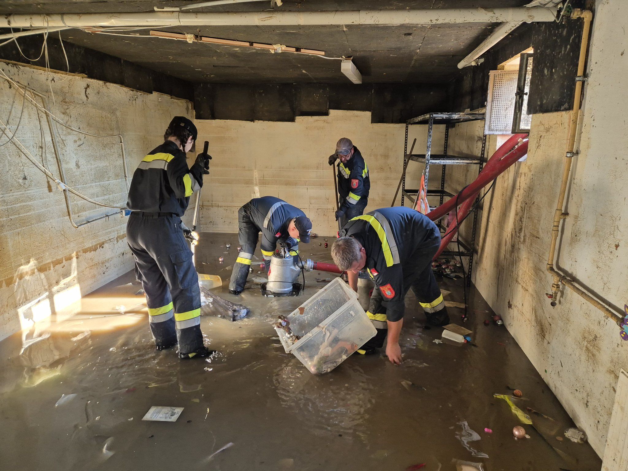 In erster Linie galt es den Betroffenen beim Auspumpen und ausräumen der Keller zu helfen. Hier wurden durch die Wassermassen ganze Existenzen zerstört. Alles was sich im Keller befand war komplett zerstört. Erst nach und nach konnte man sich einen Überblick verschaffen was alles zu tun ist. Trotzdem wusste man vor lauter Zerstörung nicht wo man eigentlich anfangen soll.