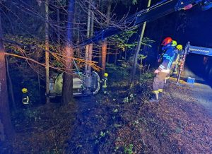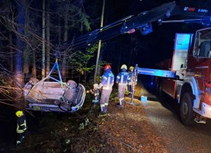 Im Zuge der OBM Land der 1000 Hügel Rallye kam ein Rallyepilot mit seinem Fahrzeug aus unbekannter Ursache von der Fahrbahn ab, überschlug sich und blieb folglich im Straßengraben zwischen mehrerer Bäume auf dem Dach zu liegen. Die Einsatzkräft aus Edlitz wurden nach dem Eintreffen an der Einsatzstelle von der bereits anwesenden Mannschaft der Freiwilligen Feuerwehr Feistritz am Wechsel eingewiesen. Im Anschluss wurde die schonende Bergung des verunfallten Rallyefahrzeuges vorbereitet. Die Bergung des Fahrzeuges gestaltete sich aufgrund der dort vorherschenden Platzverhältnisse relativ schwierig. Aus diesem Grund wurde der Wagen von der Freiwilligen Feuerwehr Feistritz mittels Seilwinde des HLFA 3 gesichert, ehe es von der Feuerwehr Edlitz mittels WLFA-K aus dem Graben gehoben und von der Unfallstelle verbracht wurde.