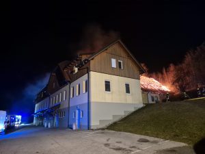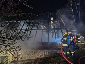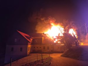 Kurz vor 00:45 Uhr wurden wir in der Nacht auf Donnerstag (28.03.2025) zu einem Großbrand der Alarmstufe 3 am Königsberg (Gde. Thomasberg) alarmiert. Wir rückten mit RLFA-3000, TLFA-4000, VRF und KDO sowie 16 Mitgliedern zum Einsatzort aus. Vor Ort eingetroffen stand das Wirtschaftsgebäude bereits in Vollbrand.