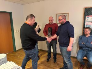 Nach dem Fahrzeugbrand am Nachmittag (11.04.2025) fand am Abend eine erweiterte Chargensitzung über anstehende Termine sowie allgemeines der Feuerwehr statt. Im Anschluss an die Sitzung wurde gemeinsam die 40er-Feier von drei Kameraden gefeiert. (Patrik Lechner, Christoph Peinthor und Christian Rodax).