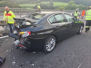 Abermals Menschenrettung. Lkw gegen Pkw auf der A2 Richtung Wien bei km. 67. Unverzüglich rückten die drei am heimweg befindlichen Fahrzeuge auf die A2 aus. Weiters wurde das TLF und das WLF in Marsch gesetzt, um auf der A2 zu unterstützen. Vor Ort bot sich sich uns folgendes Bild: Ein Sattelzug dürfte das Stauende einer Tagesbaustelle übersehen haben und krachte auf das Heck eines Pkw. Glücklicherweise erlitten die beiden Pkw Insassen nur leichte Verletzungen und waren bereits aus dem Fahrzeug. Der Lkw Lenker blieb unverletzt. Aufgrund der Alarmierung wurde auch der Notarzthubschrauber C9 aus Wien alarmiert, welcher auf der A2 landete. Hierfür musste die A2 Richtung Wien gesperrt werden. Nachdem die Polizei die Unfallstelle freigab wurde von uns der schwer beschädigte Pkw mittels Kran des WLF geborgen und von der A2 verbracht. Weiters wurde die Fahrbahn gereinigt und ausgelaufene Betriebsmittel gebunden. Nach rund 2 Stunden konnte die Einsatzbereitschaft wieder hergestellt werden. Wir bedanken uns bei allen beteiligten Blaulichtorganisationen für die gute Zusammenarbeit.