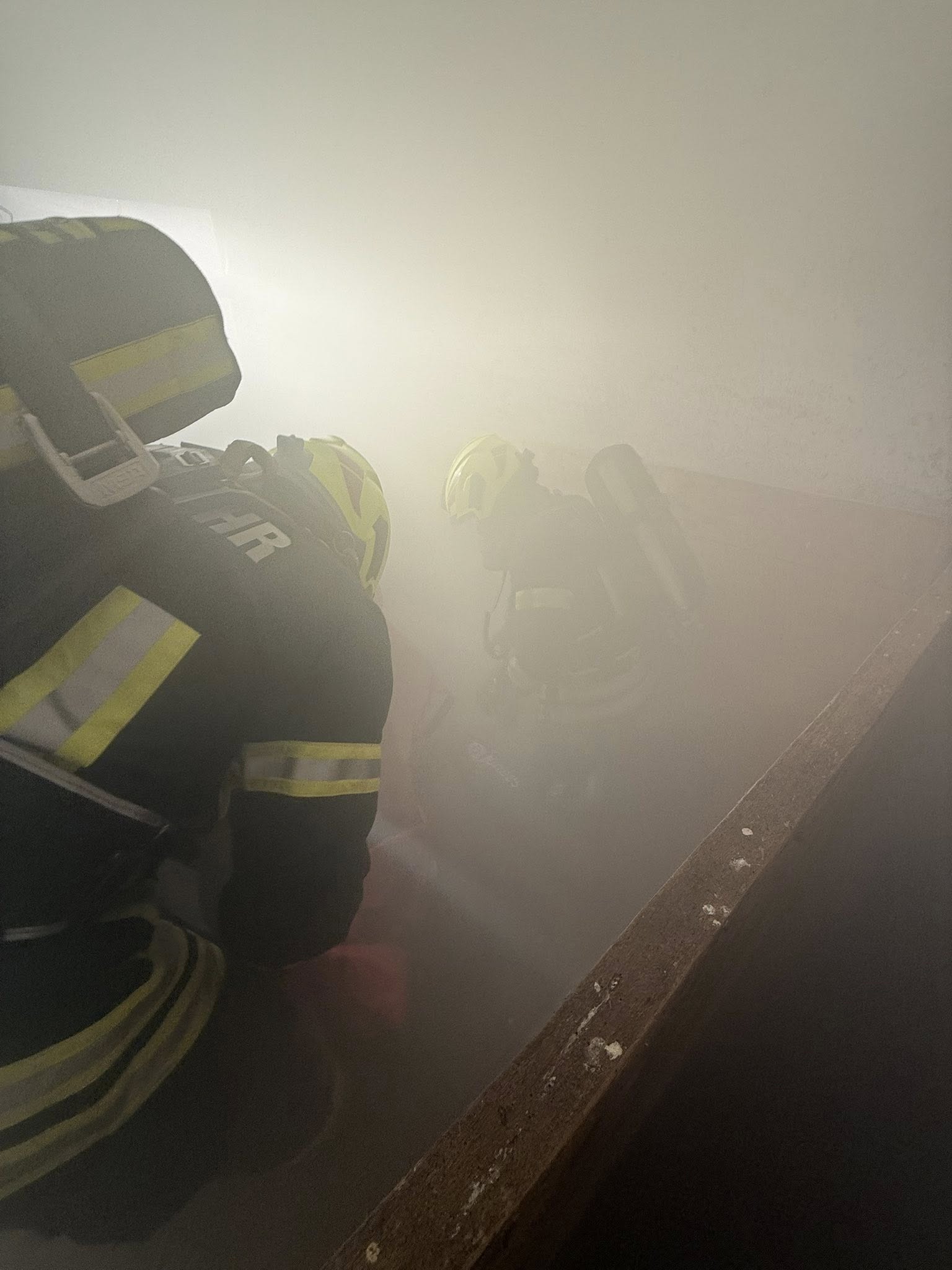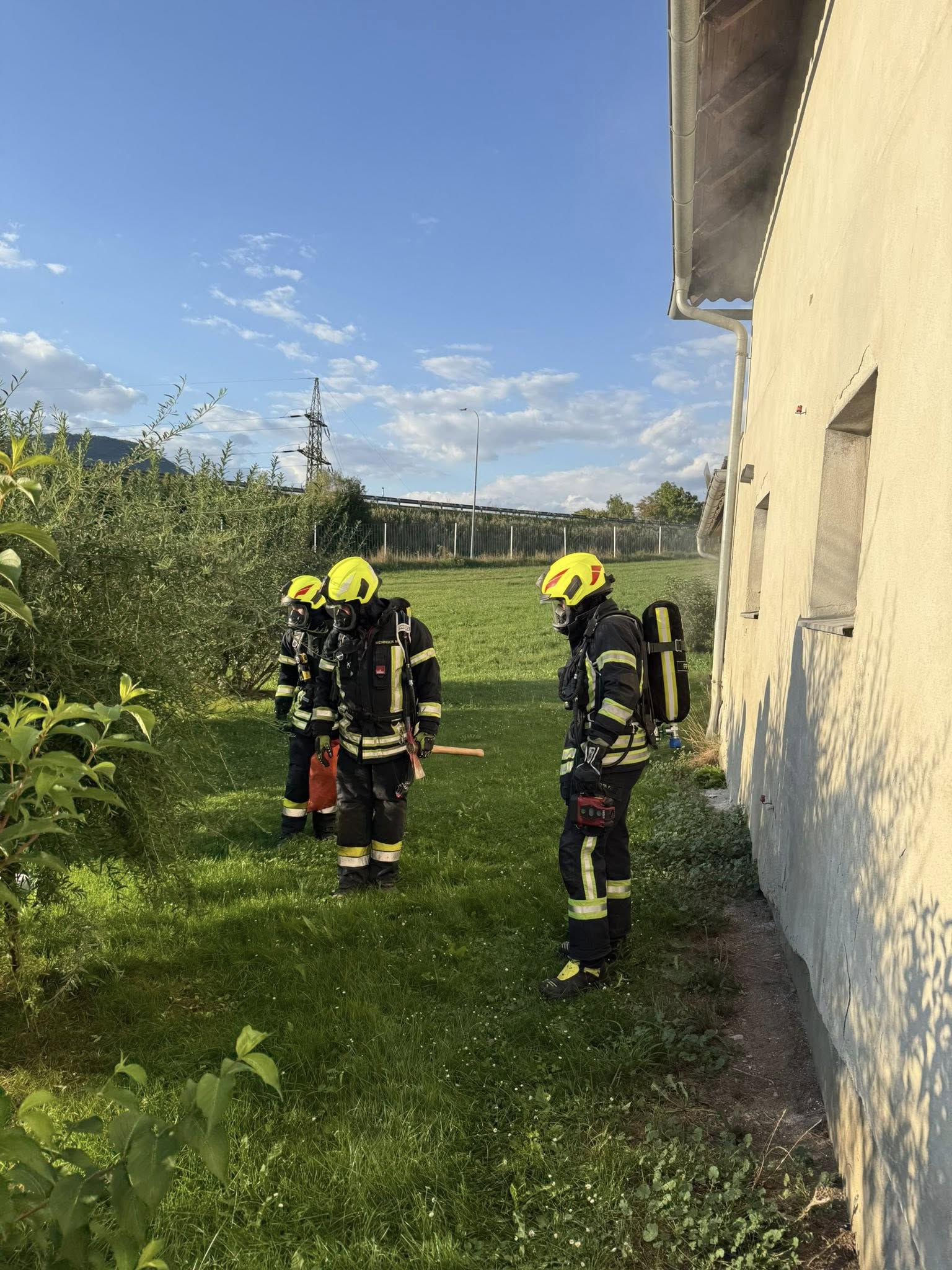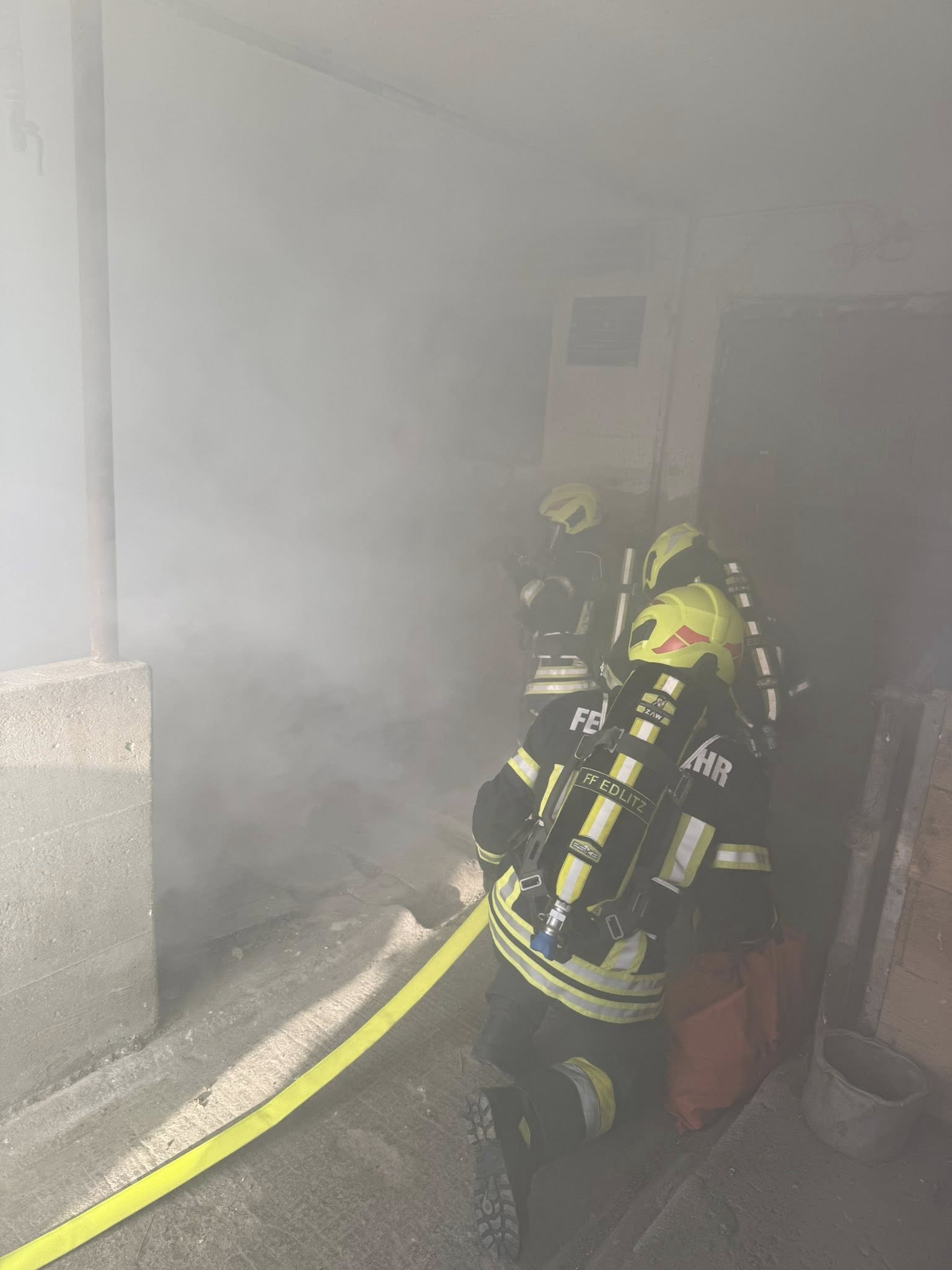 Die im Tanklöschfahrzeug befindliche Mannschaft wurde mit der Menschenrettung mittels Atemschutz sowie dem herstellen der 1. Löschleitung beauftragt, während die Mannschaft des Rüstlöschfahrzeuges die Wasserversorgung zum Tanklöschfahrzeug sowie einen weiteren Atemschutztrupp stellte. Weiters wurde durch die Rüstlösch-Besatzung der Druckbelüfter in Stellung gebracht um das Gebäude rauchfrei zu bekommen.