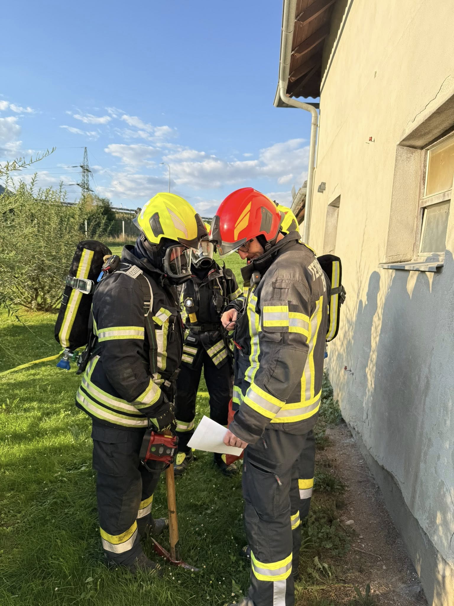 Nach dem Eintreffen am Übungsobjekt wurde zunächst vom Übungseinsatzleiter die Lage erkundet und in weiterer Folge die eingesetzte Mannschaft eingeteilt.