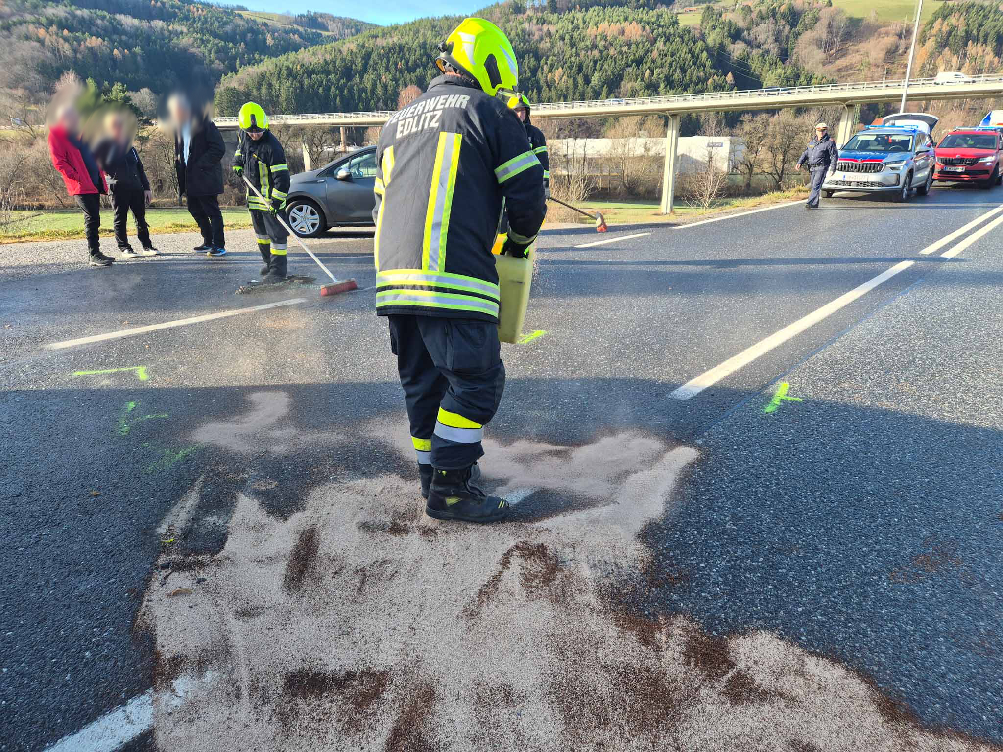 Gefolgt vom WLF und dem Kommandofahrzeug. Vor Ort konnte rasch Entwarnung gegeben werden. Trotz der schweren Beschädigungen an den Unfallfahrzeugen kamen alle Insassen ohne gröbere Verletzungen davon. Eine Lenkerin musste mit leichten Verletzungen vom SMD Aspang Mönichkirchen ins LK Wr. Neustadt gebracht werden. Während der gesamten Einsatzdauer musste die B55 im Unfallsbereich gesperrt werden. Eine Umleitung über die Lehensiedlung wurde eingerichtet. Nach der polizeilichen Freigabe wurden beide Unfallfahrzeuge mittels Kran und Hubbrille des WLF geborgen und verbracht. Weiters mussten ausgelaufene Betriebsmittel gebunden und die Fahrbahn gereinigt werden. Hierfür wurde auch die Strassenmeisterei nachgefordert. Nach rund einer Stunde konnte der Einsatz beendet werden.