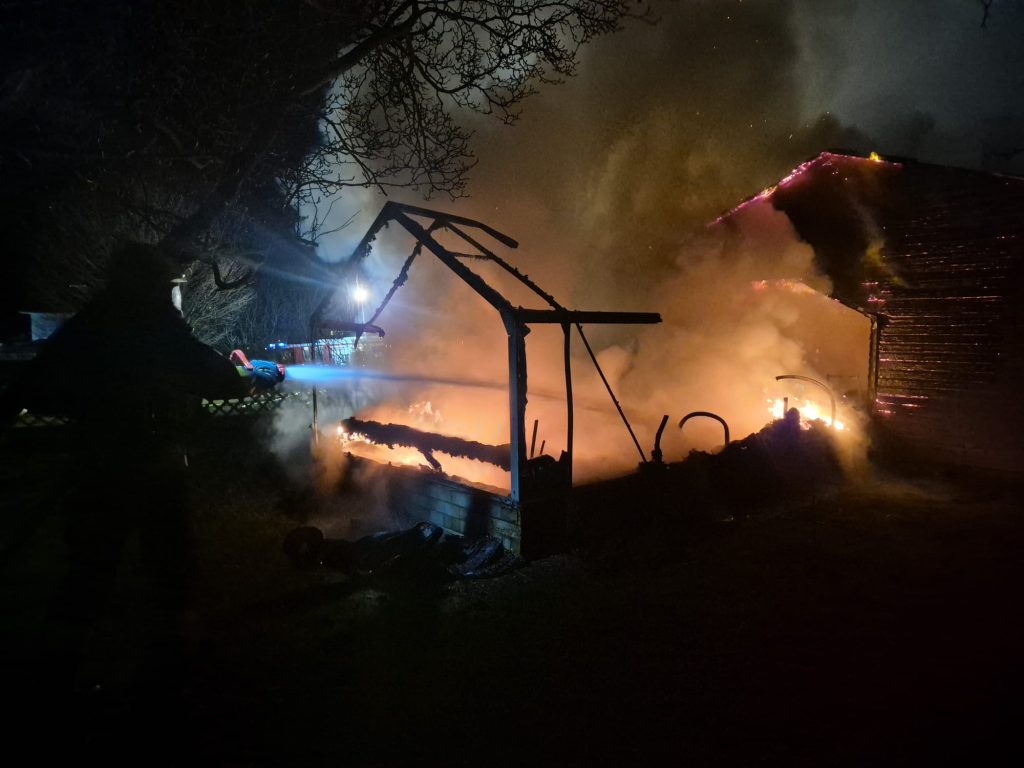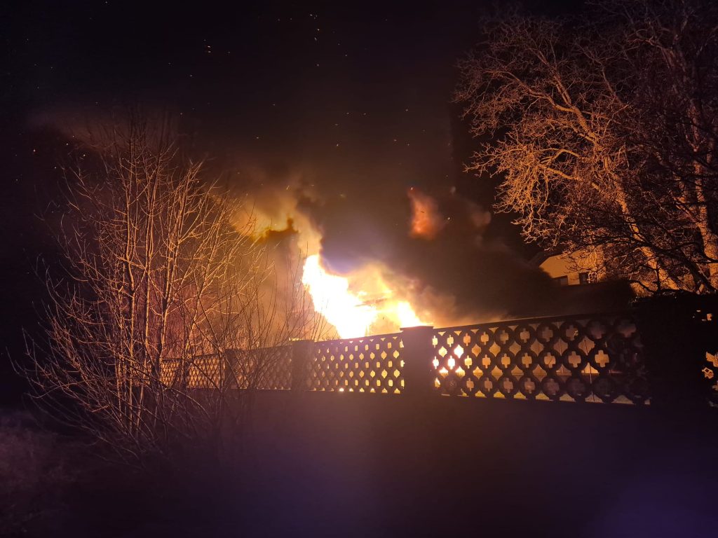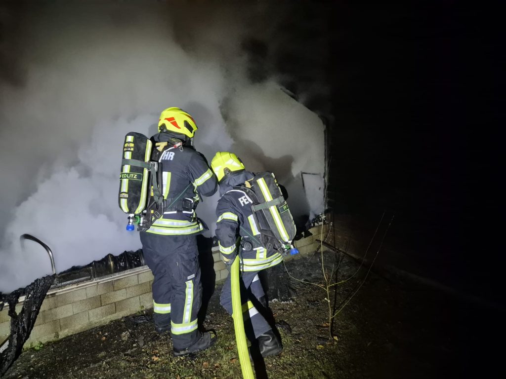 Kurz nach 17:30 Uhr wurden wir am Dienstagnachmittag (16.12.2025) zu einem Brandeinsatz nach Hütten (Grimmenstein) alarmiert. Wir rückten mit dem VRF, TLFA-4000. RLFA-3000 sowie 15 Mitgliedern zum Einsatz aus. Am Einsatzort eingetroffen stand eine Gartenhütte bereits in Vollbrand. Ein übergreifen auf einen naheliegendes Wohnhaus konnte verhindert werden. Unsere Aufgabe bestand darin, Brandbekämpfung unter Atemschutz, ausräumen von Brandgut sowie Wasserversorgung für das RLF Grimmenstein. Nach rund 2 Stunden konnten wir den Einsatz beenden. Wir bedanken uns bei der FF Grimmenstein Markt, der FF Petersbaumgarten, dem Rettungsdienst sowie der Polizei für die gewohnt gute Zusammenarbeit.